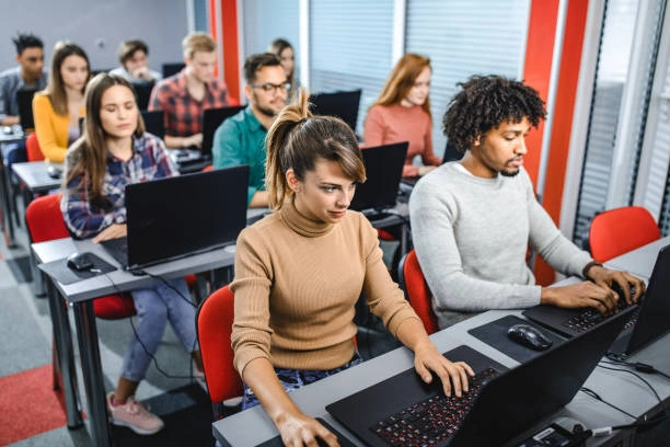 - Computador por Aluno: Cada aluno tem à disposição um computador privado durante as aulas, permitindo a prática constante e eficaz das habilidades aprendidas.